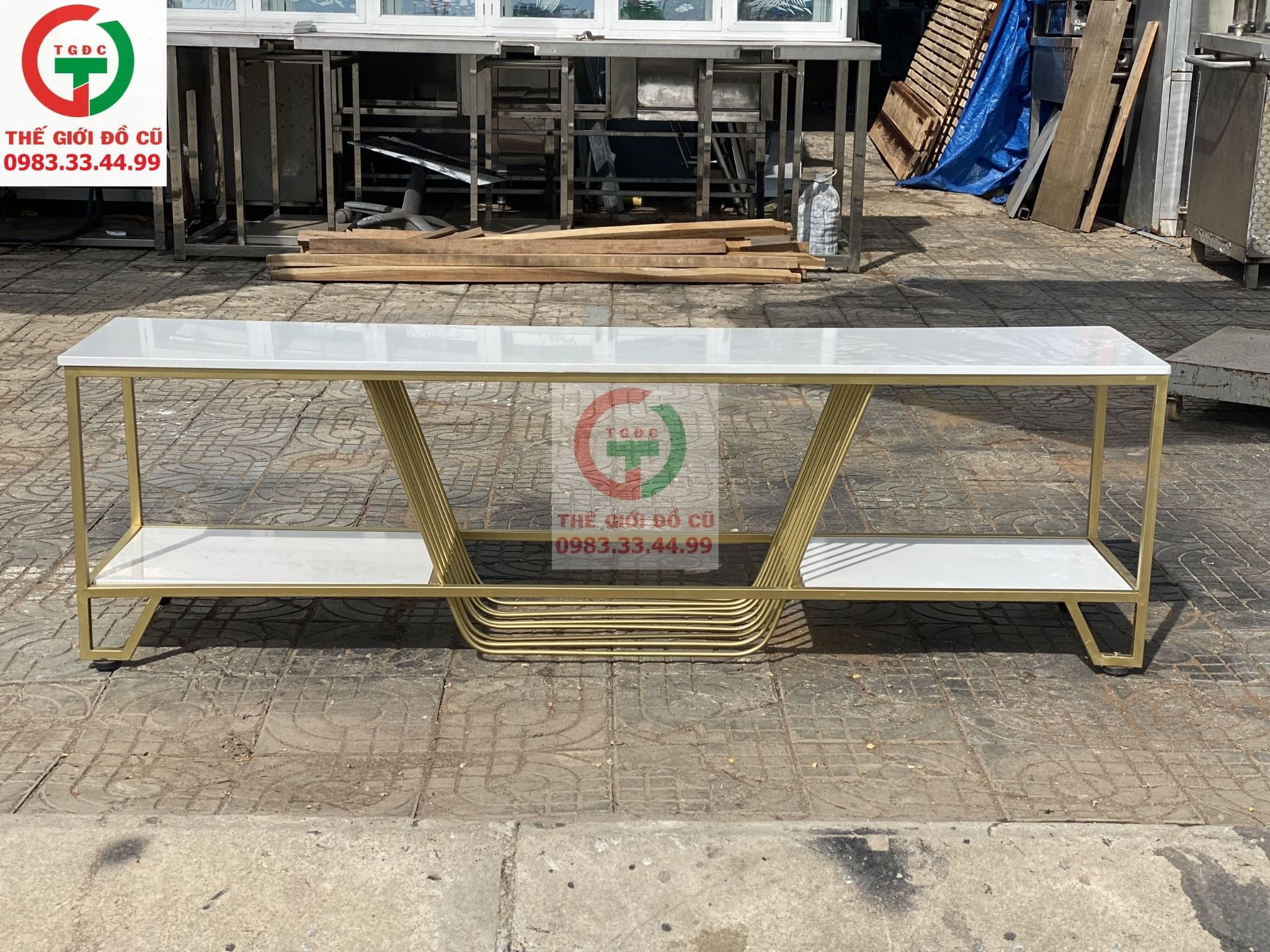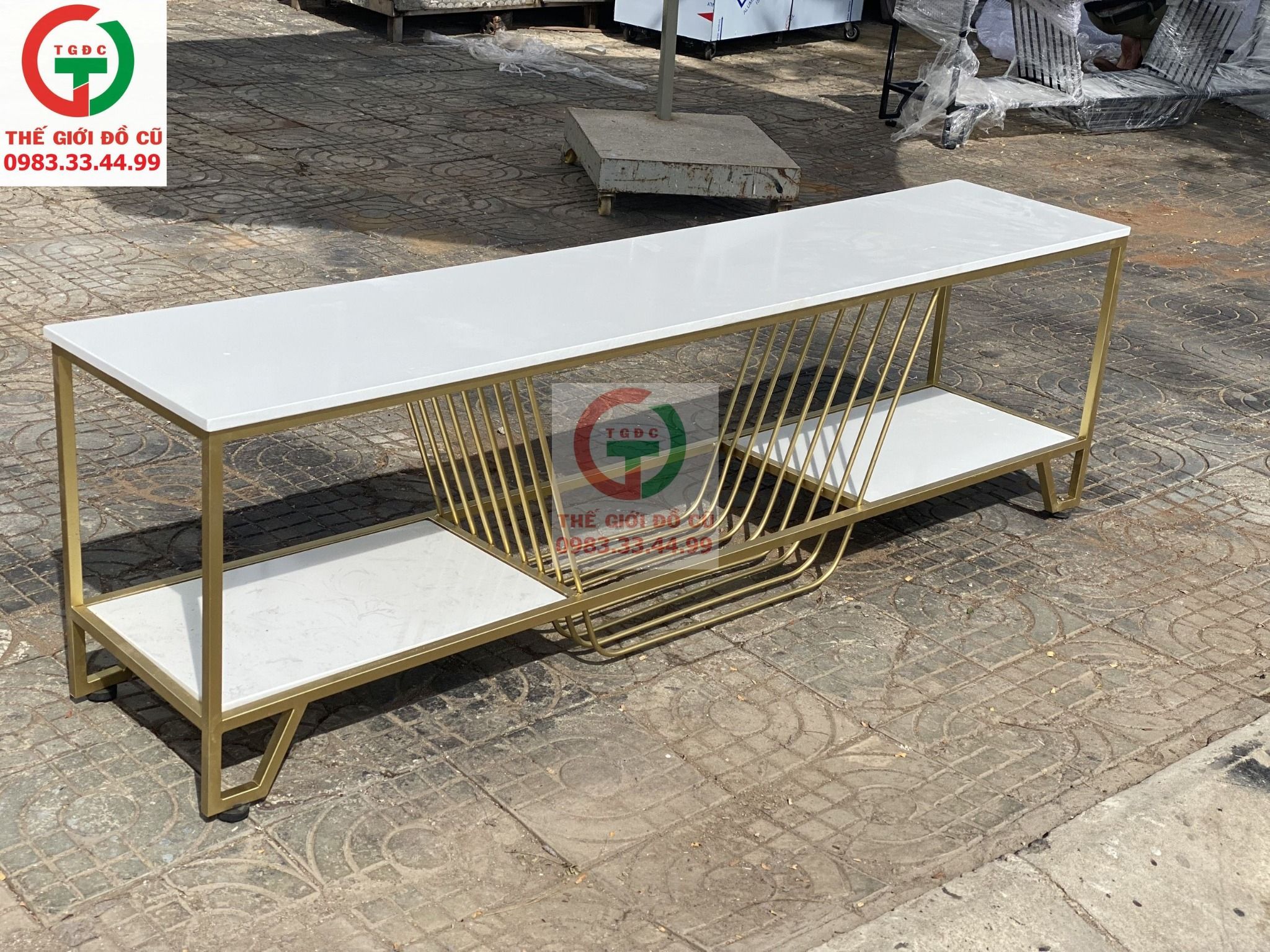 Kệ tivi khung sắt mặt đá hiện đại dành cho không gian phòng khách nhà sang trọng.