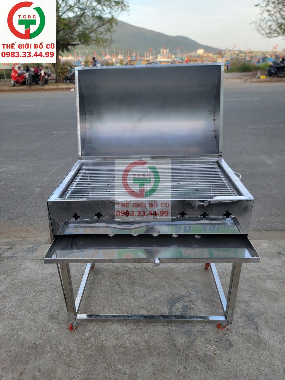Lò nướng than BBQ - lò nướng than có nắp inox. Nướng bánh, thịt cá tại nhà vườn tiệc lễ hội hay các khu nghỉ dưỡng, làng ven cắm trại cho khách thuê.