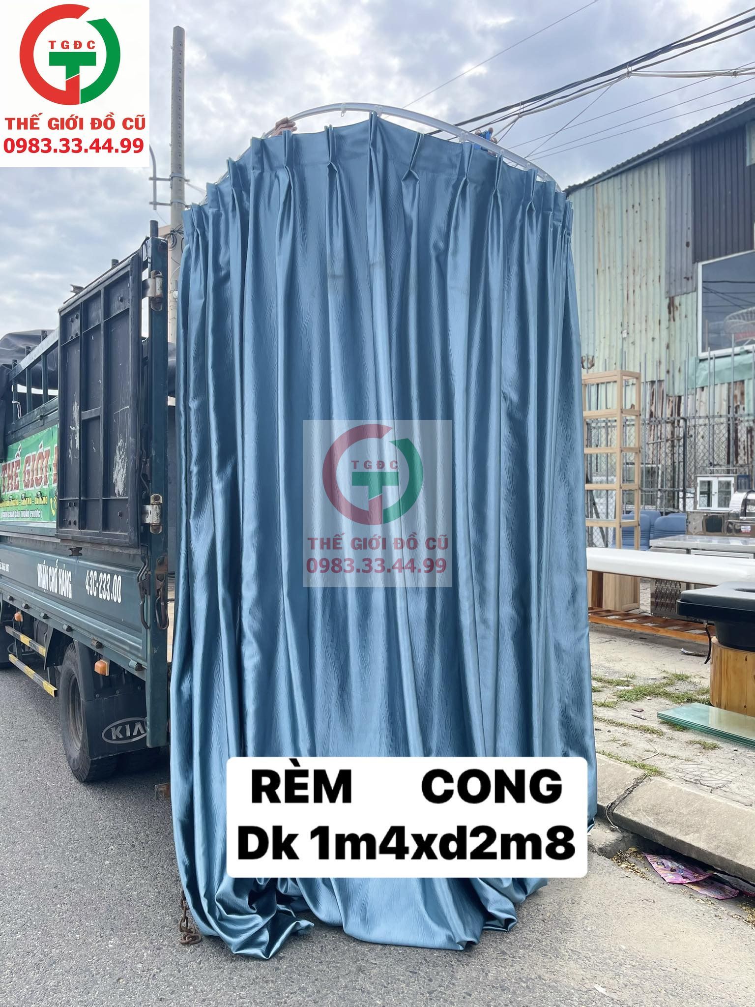 Thanh lý Về số lượng Màn Rèm khung cong, vải dày không bong xù, còn mới hoa văn đẹp, màu xanh sạch sẽ.