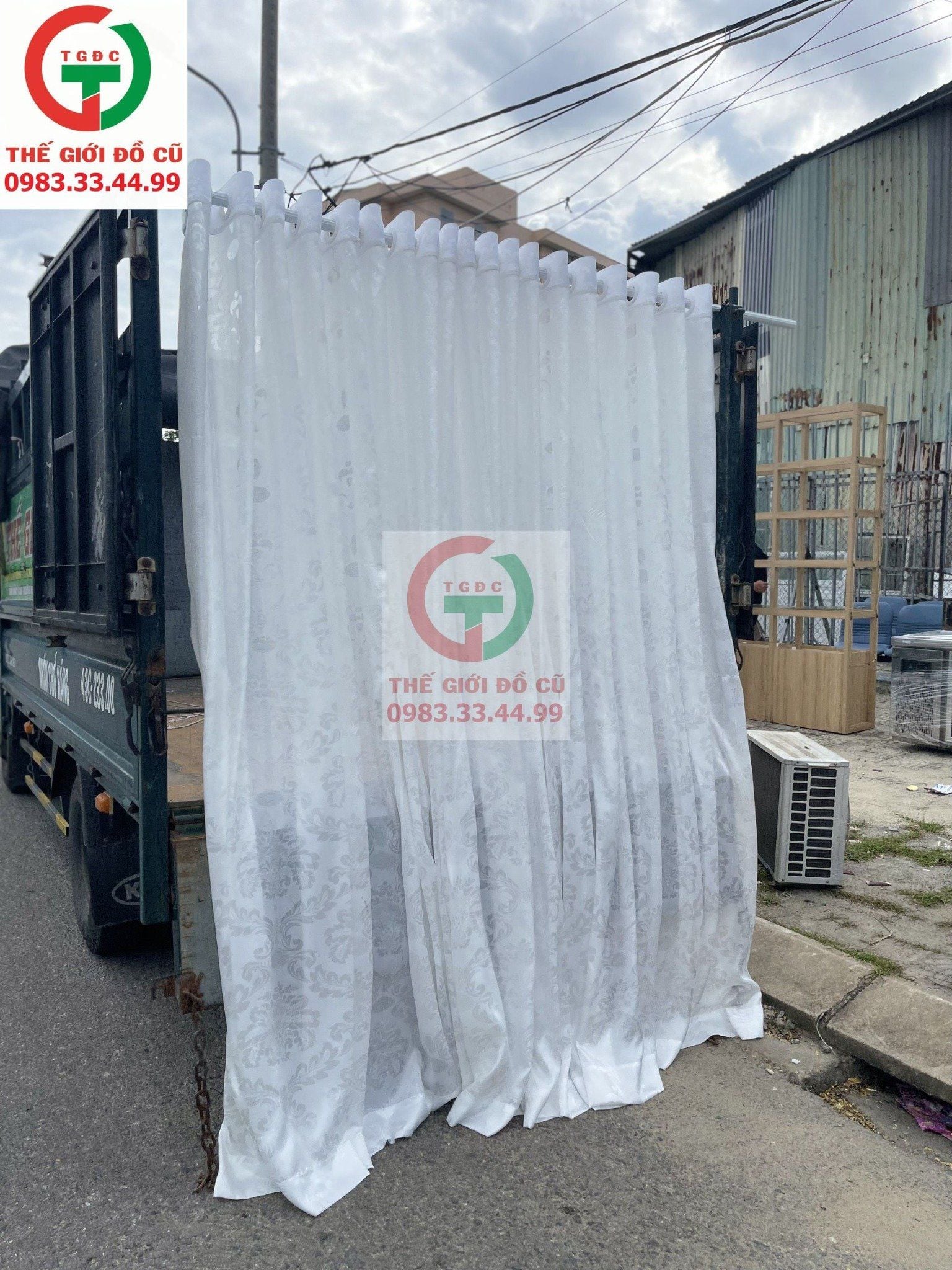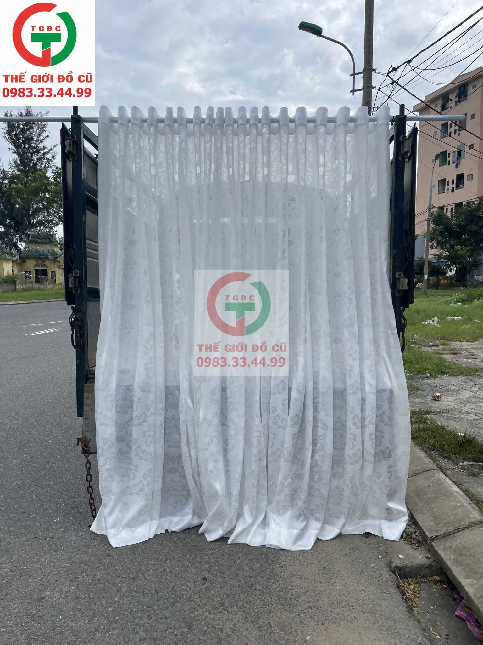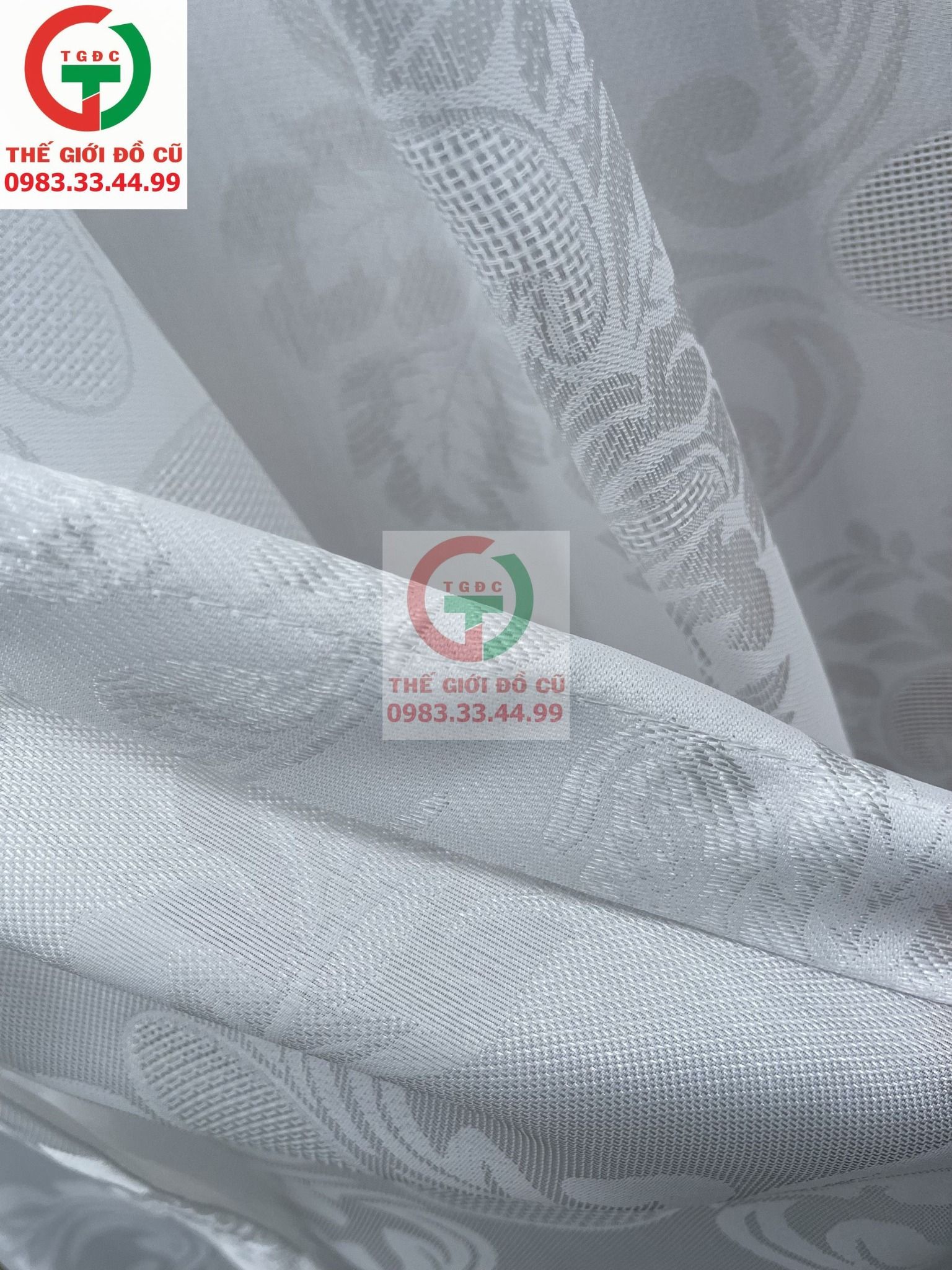 Thanh lý Về số lượng Màn Rèm Spa vải dày không bong xù, còn mới hoa văn đẹp, màu trắng sạch sẽ.