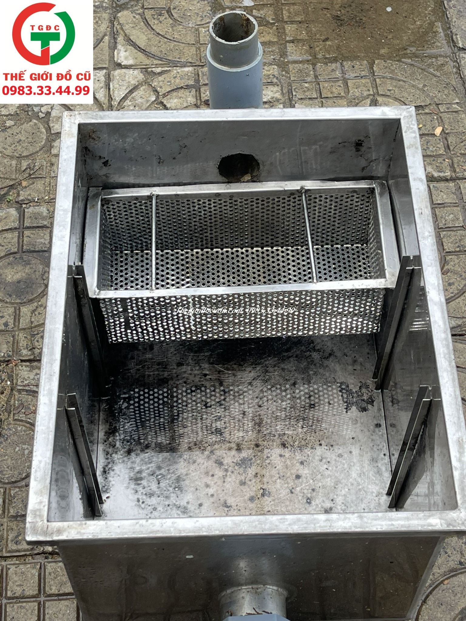 Thanh lý Máng inox lọc dầu tách mỡ còn mới, sẵn ống khay lưới, nắp đậy..