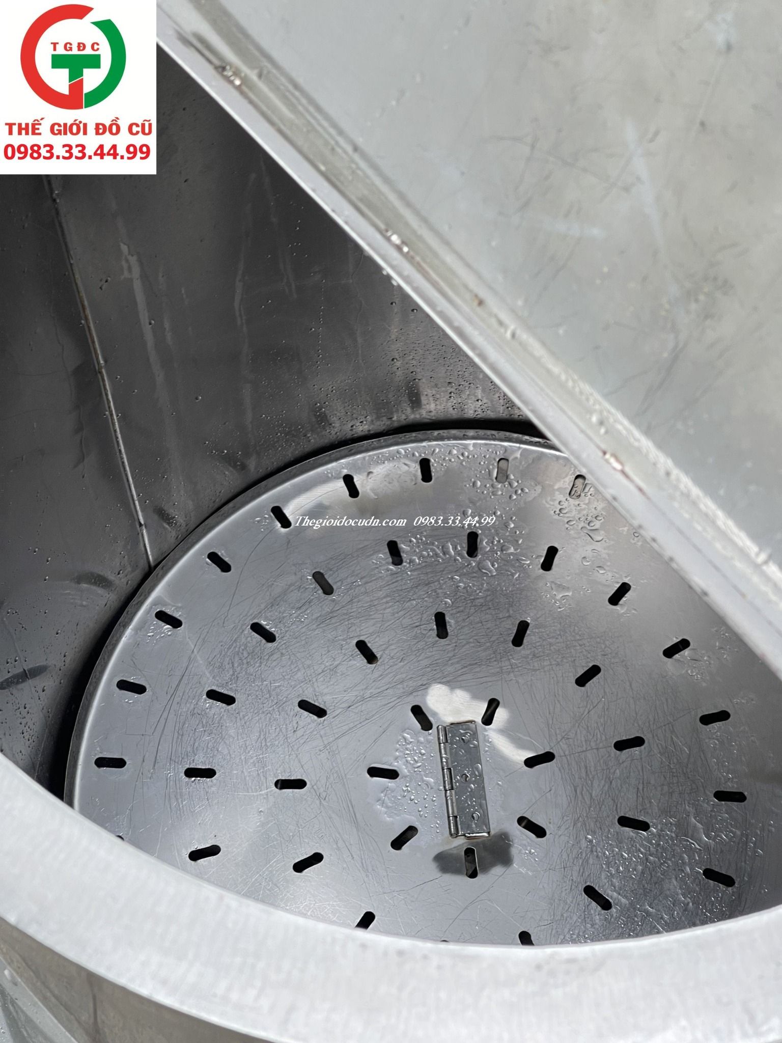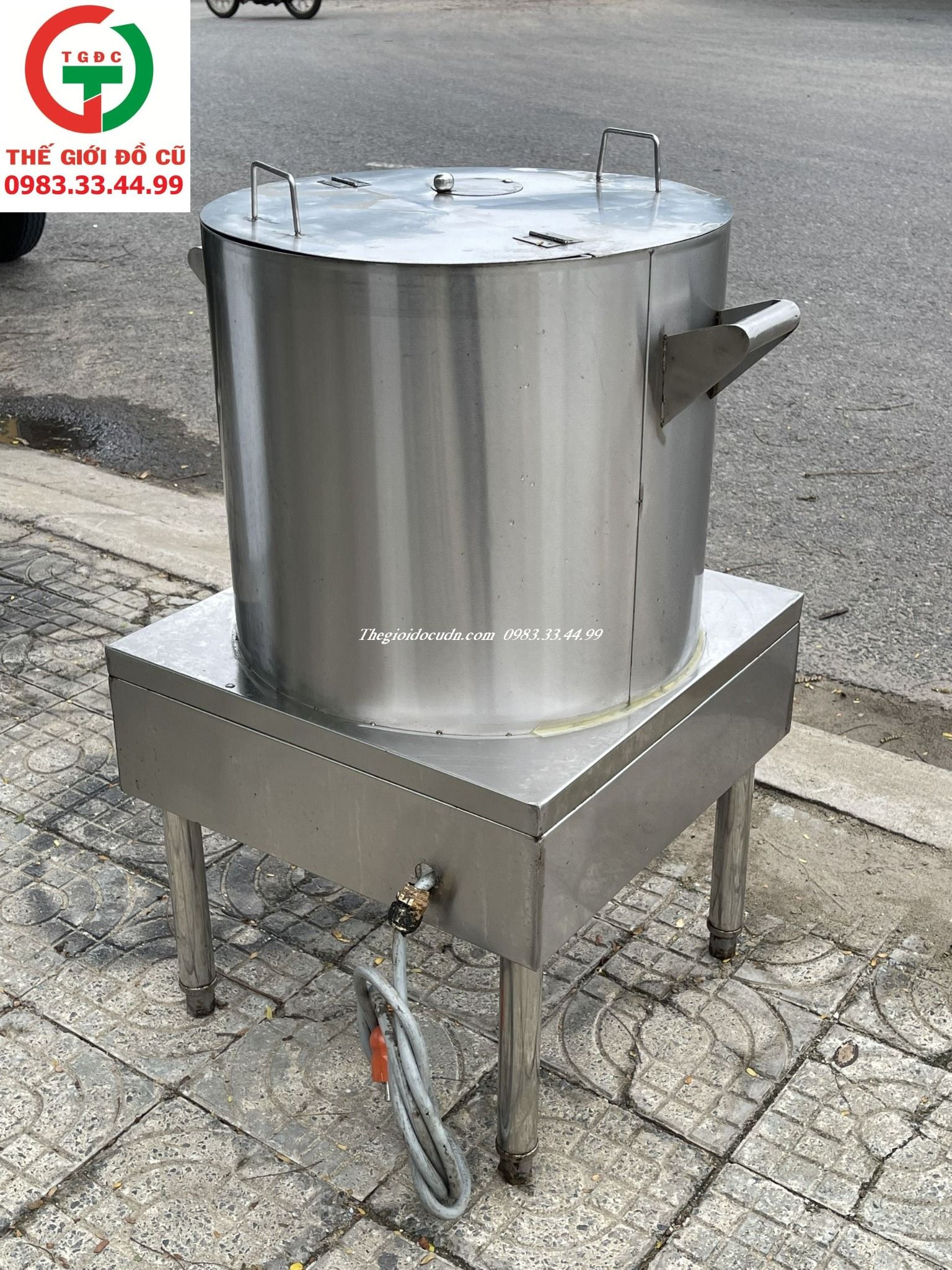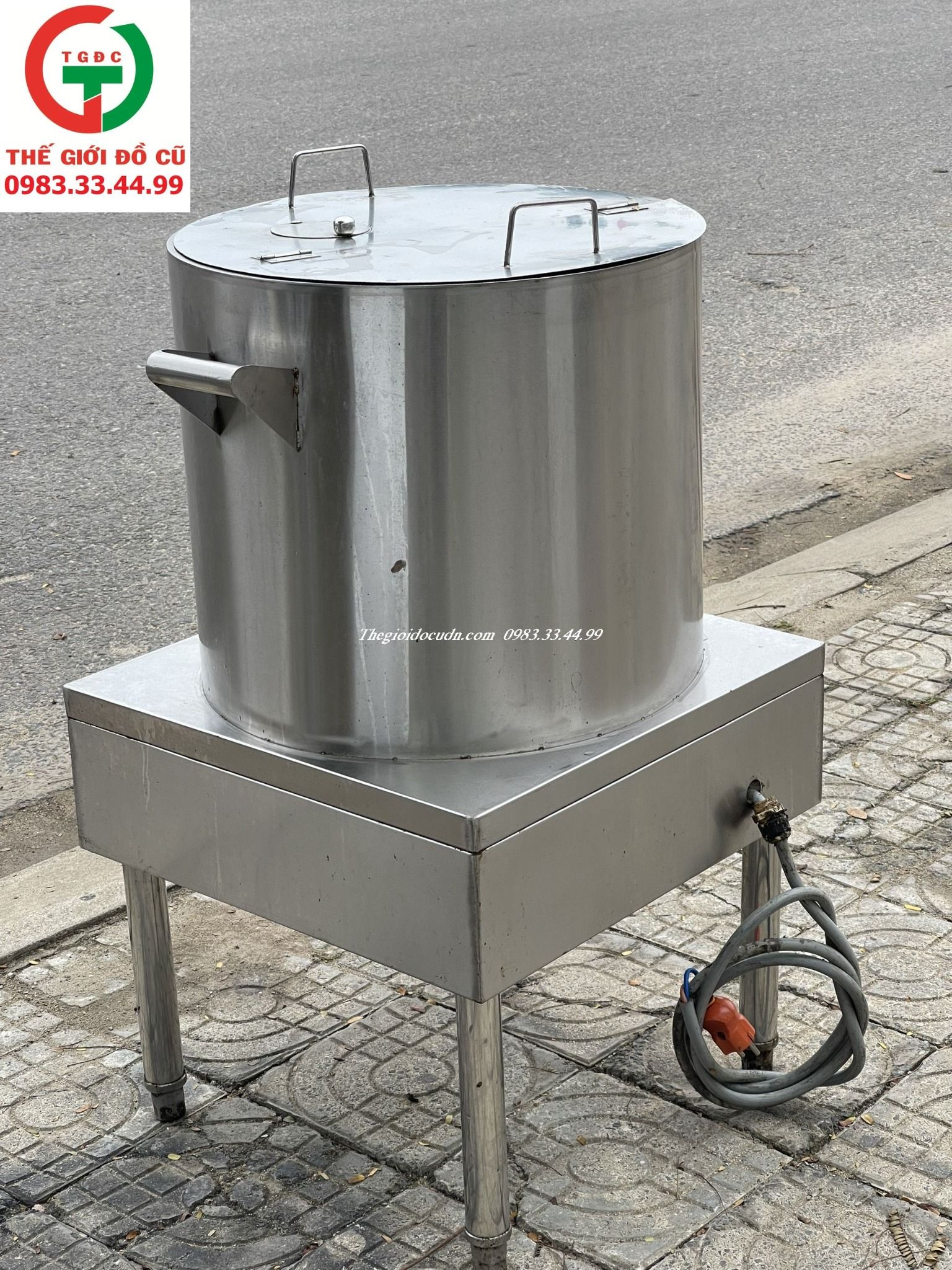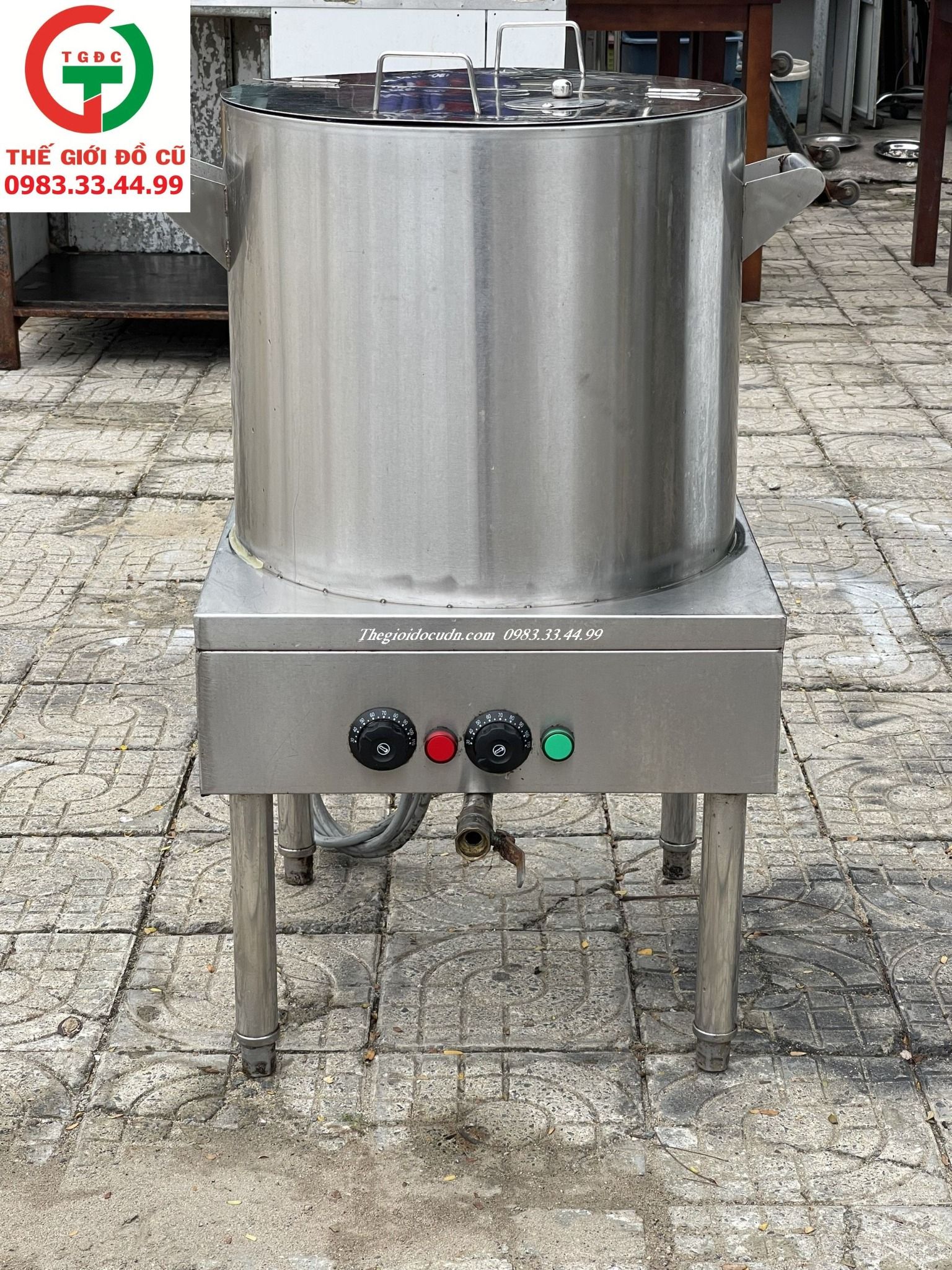 Nồi còn mới, inox 304 sạch sẽ dễ lau chùi, còn đầy đủ dây điện, nắp vung, ống xả..