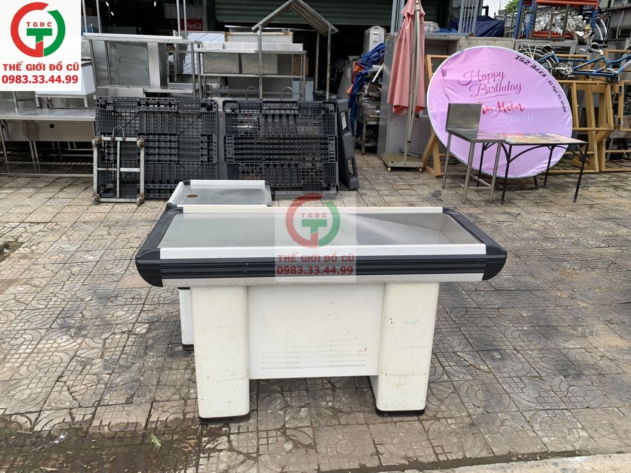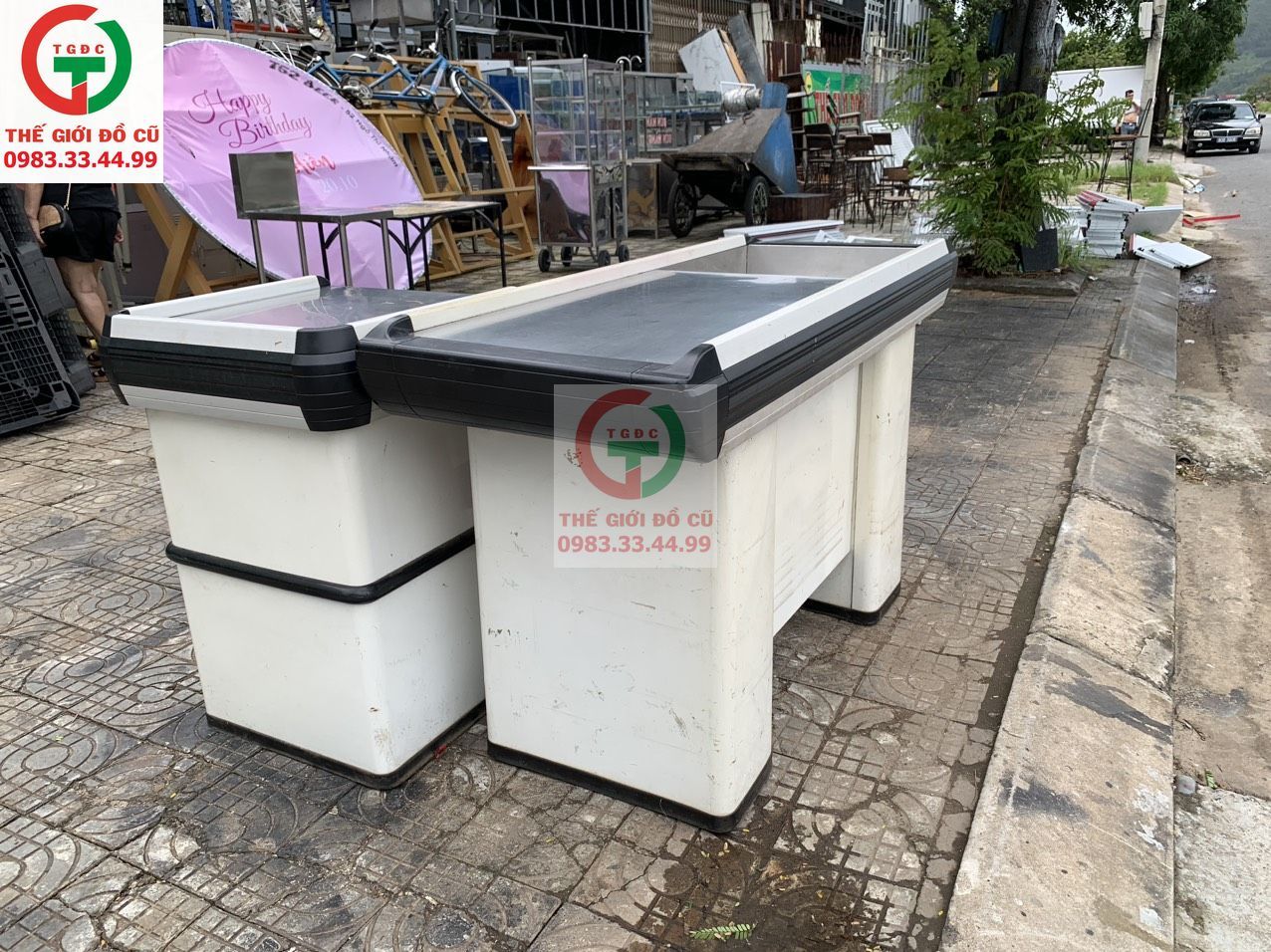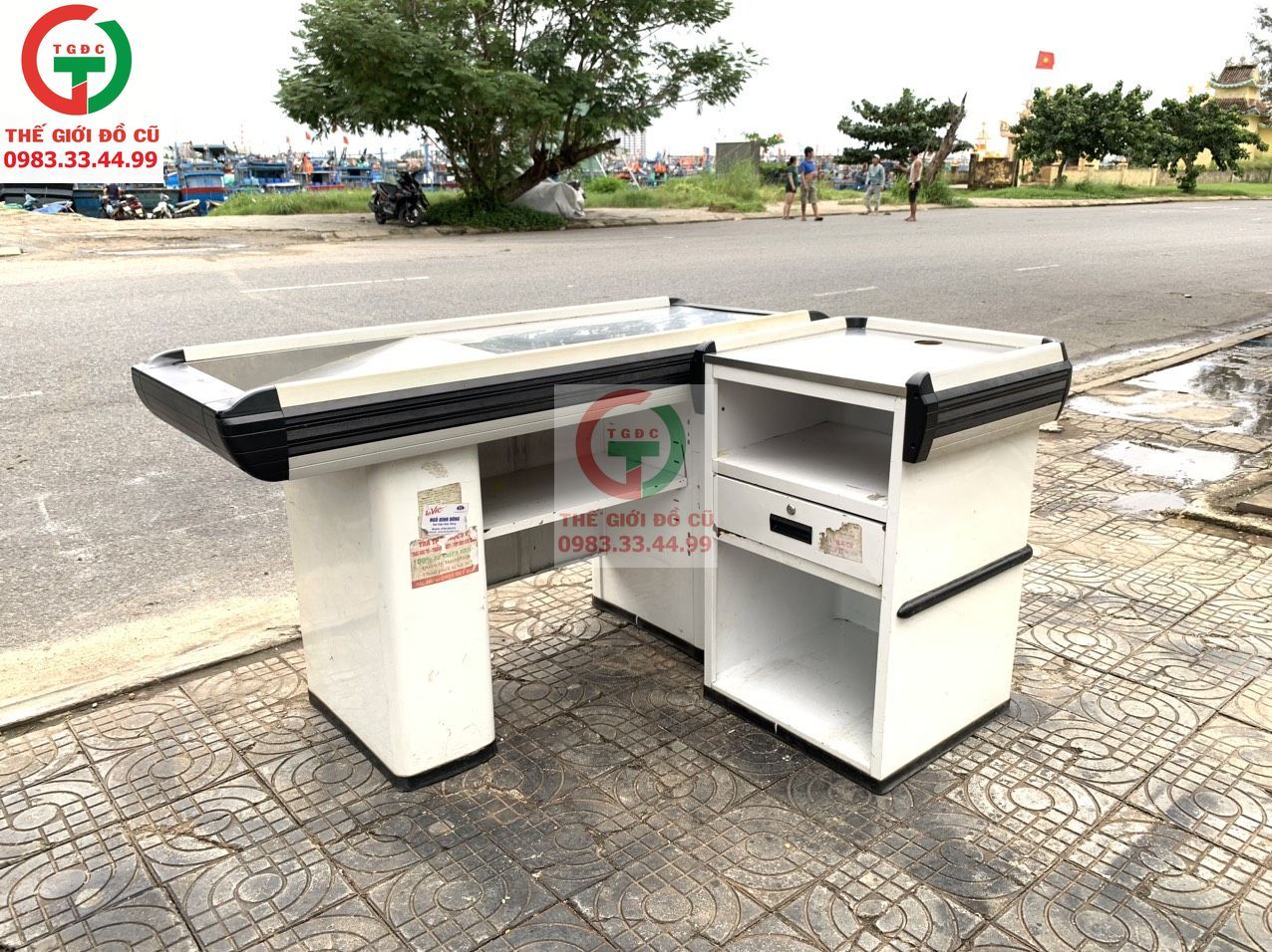 Thanh lý Quầy Thu Ngân Siêu Thị góc L còn mới 90%, ngăn hộc thọa đầy đủ, sử dụng trong các cửa hàng tạp hóa, siêu thị, shop thời trang,…