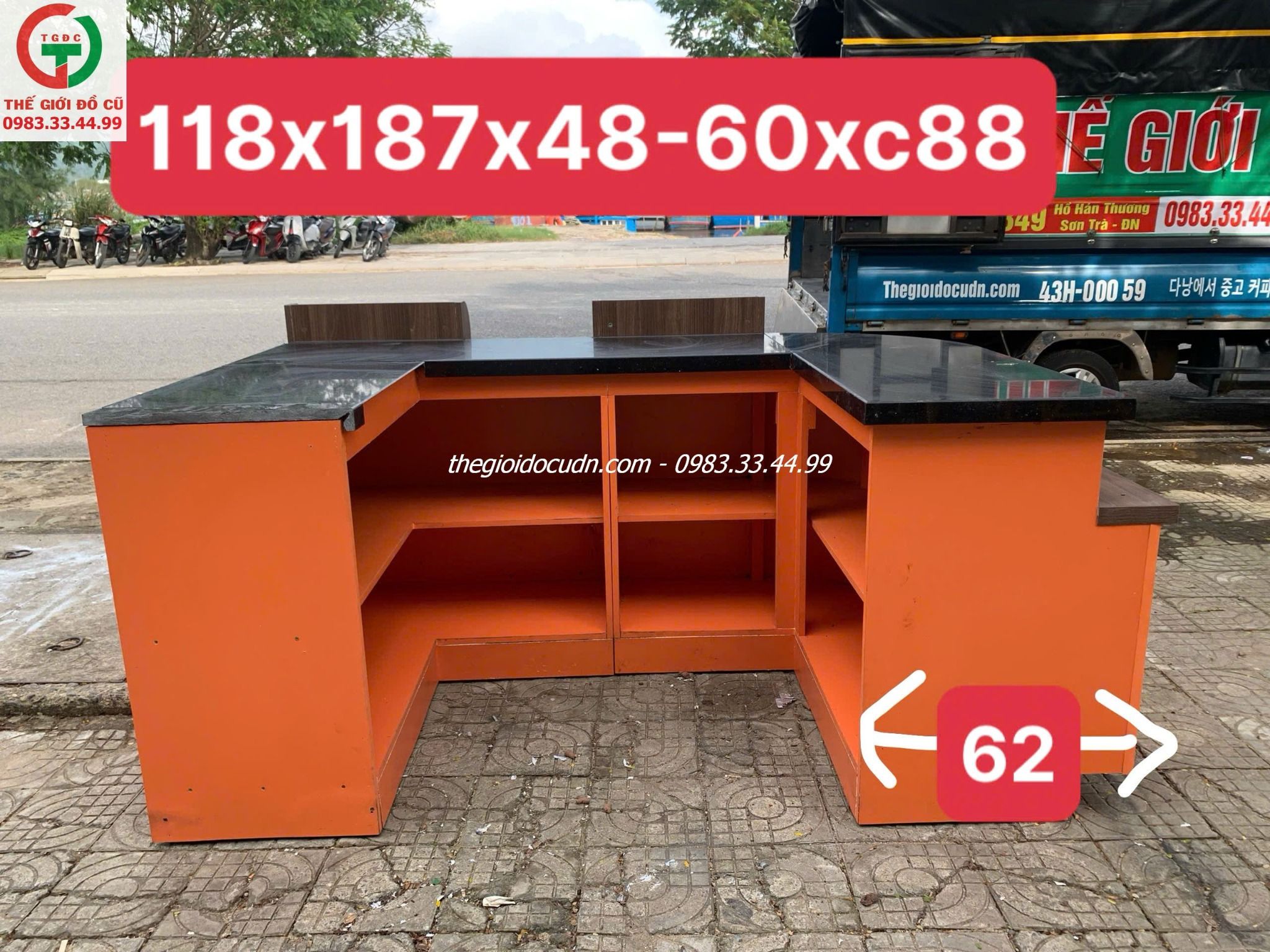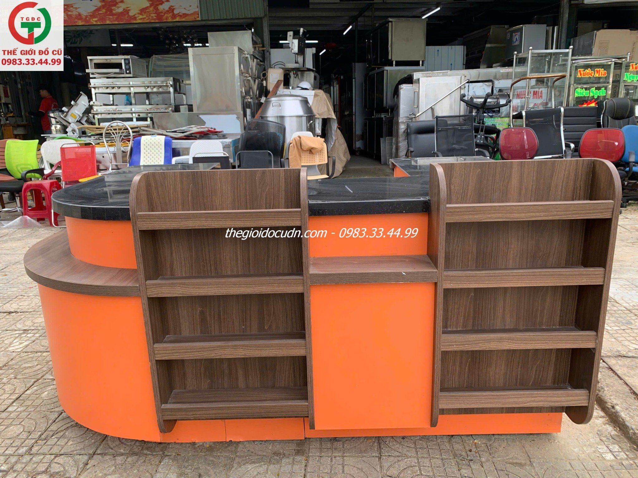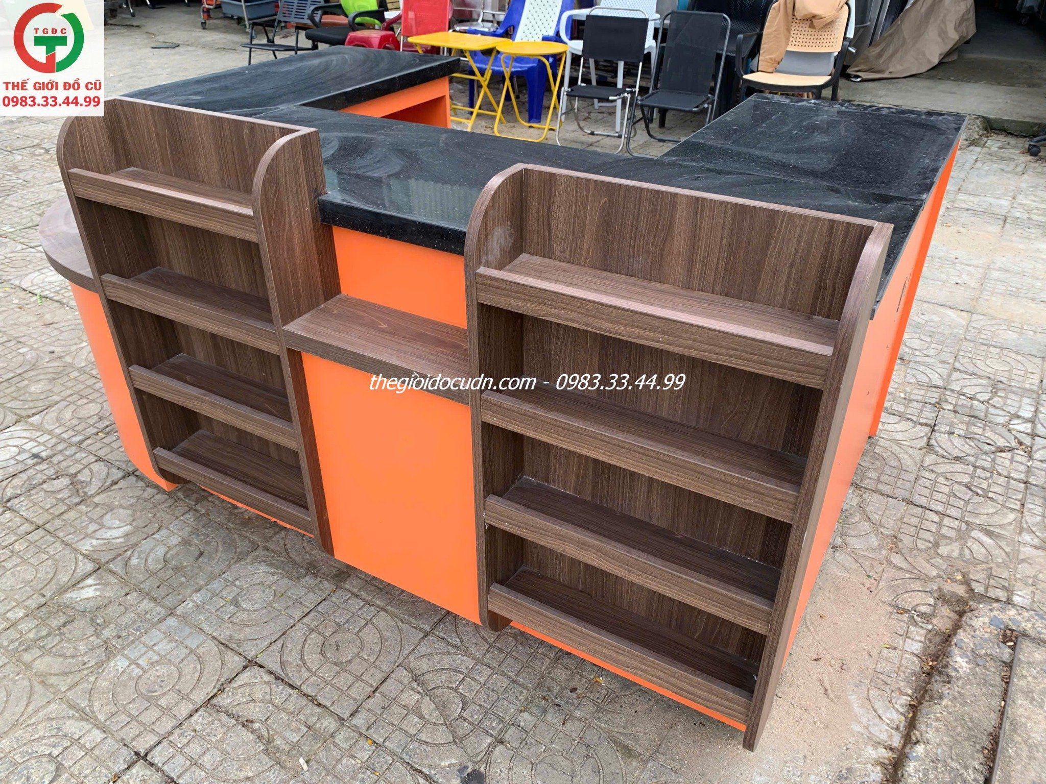 Thanh lý quầy bar còn sử dụng tốt, thiết kế hình chữ U và mặt trước có kệ tủ trưng bày đồ, thích hợp spa, tạp hóa, siêu thị,....