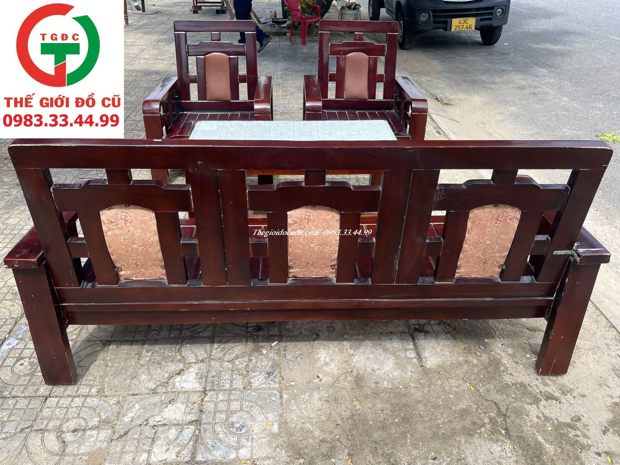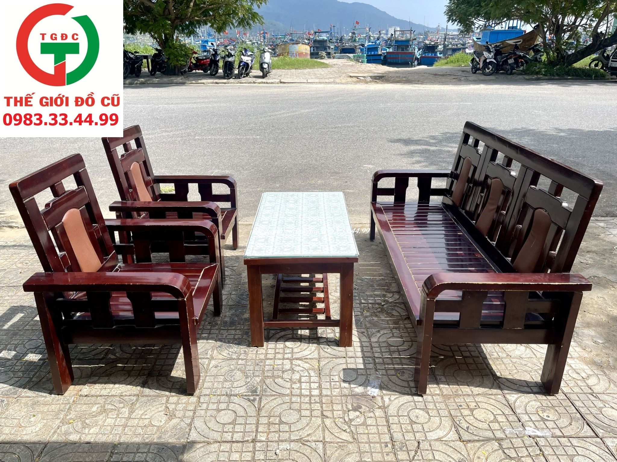 Thanh lý Bộ Salon gỗ còn mới, PU bóng đậm màu chắc đẹp sang cho gia đình ngồi tiếp khách.