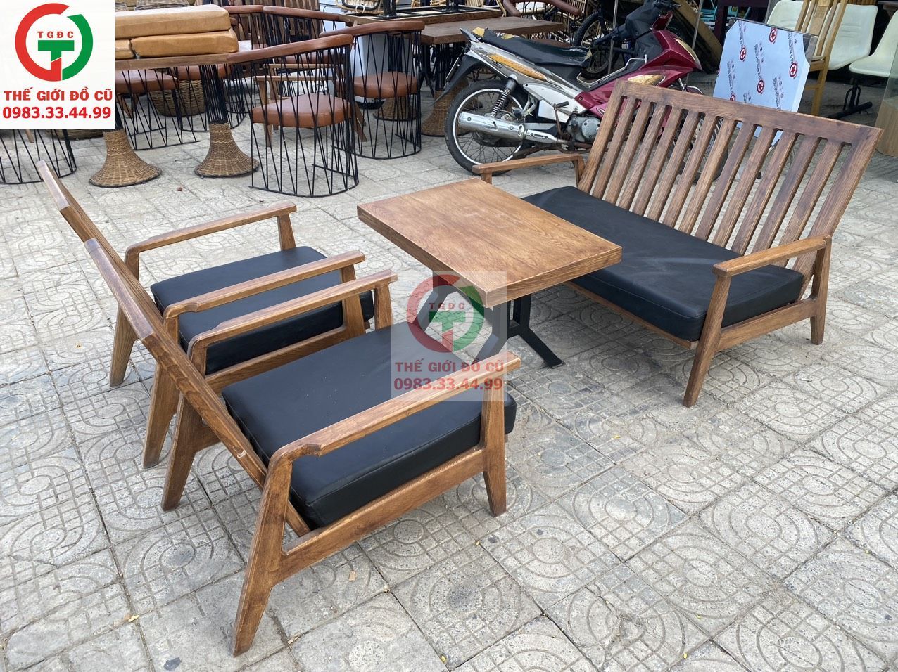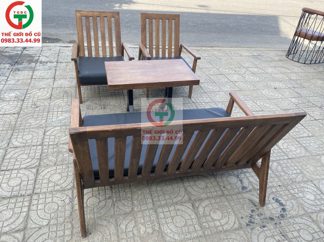 Thanh lý Bộ Salon gỗ nan đệm lót da nâu còn mới xịn setup quán cafe không gian xưa đẹp sang..