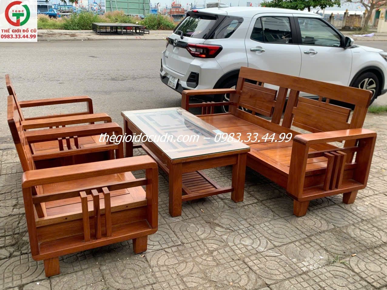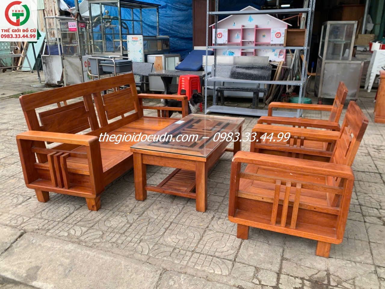 Thanh lý Bộ bàn ghế salon gỗ còn mới bóng màu PU sang đẹp, thanh lý cho văn phòng, gia đình tiếp khách..