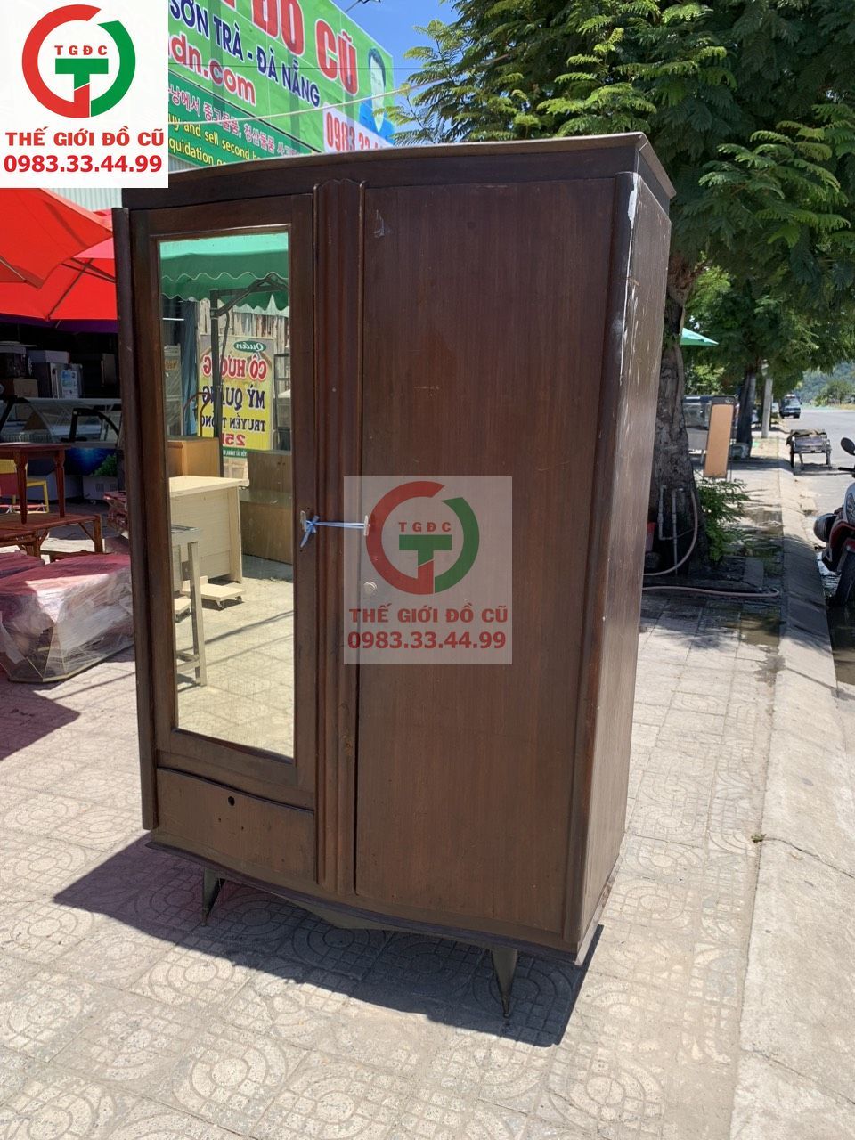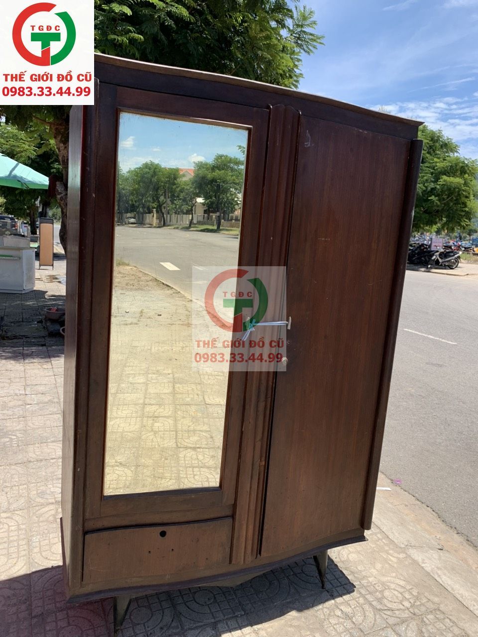-Thanh lý Tủ gỗ áo quần chân đồng xưa còn chắc đẹp, chất gỗ dày sử dụng bền đẹp.