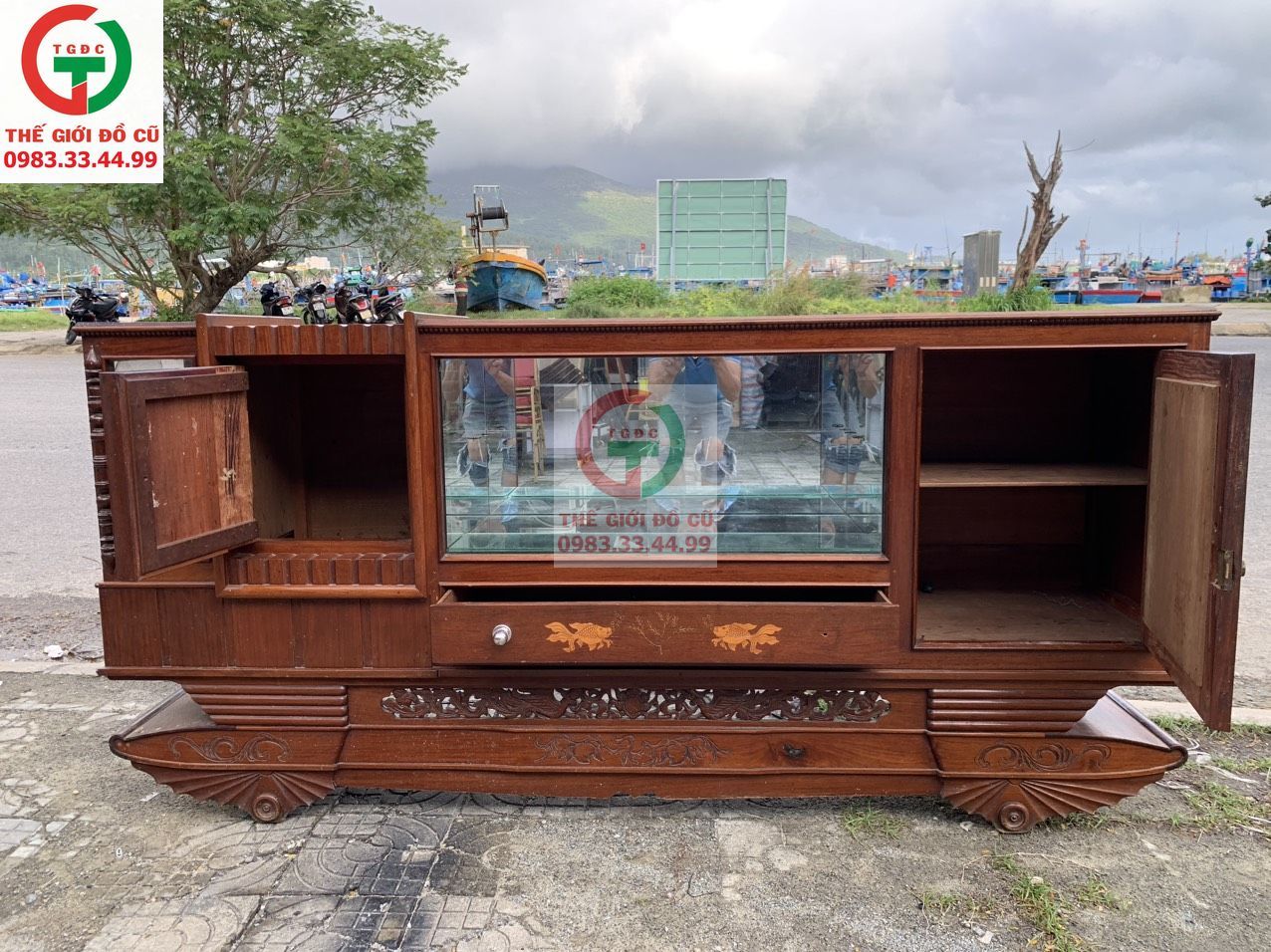 Thanh lý Tủ Buffet chân thuyền gỗ hương xưa còn đẹp keng chắc cứng..làm kệ tivi hay decor quán xá cafe vintage, không gian xưa..