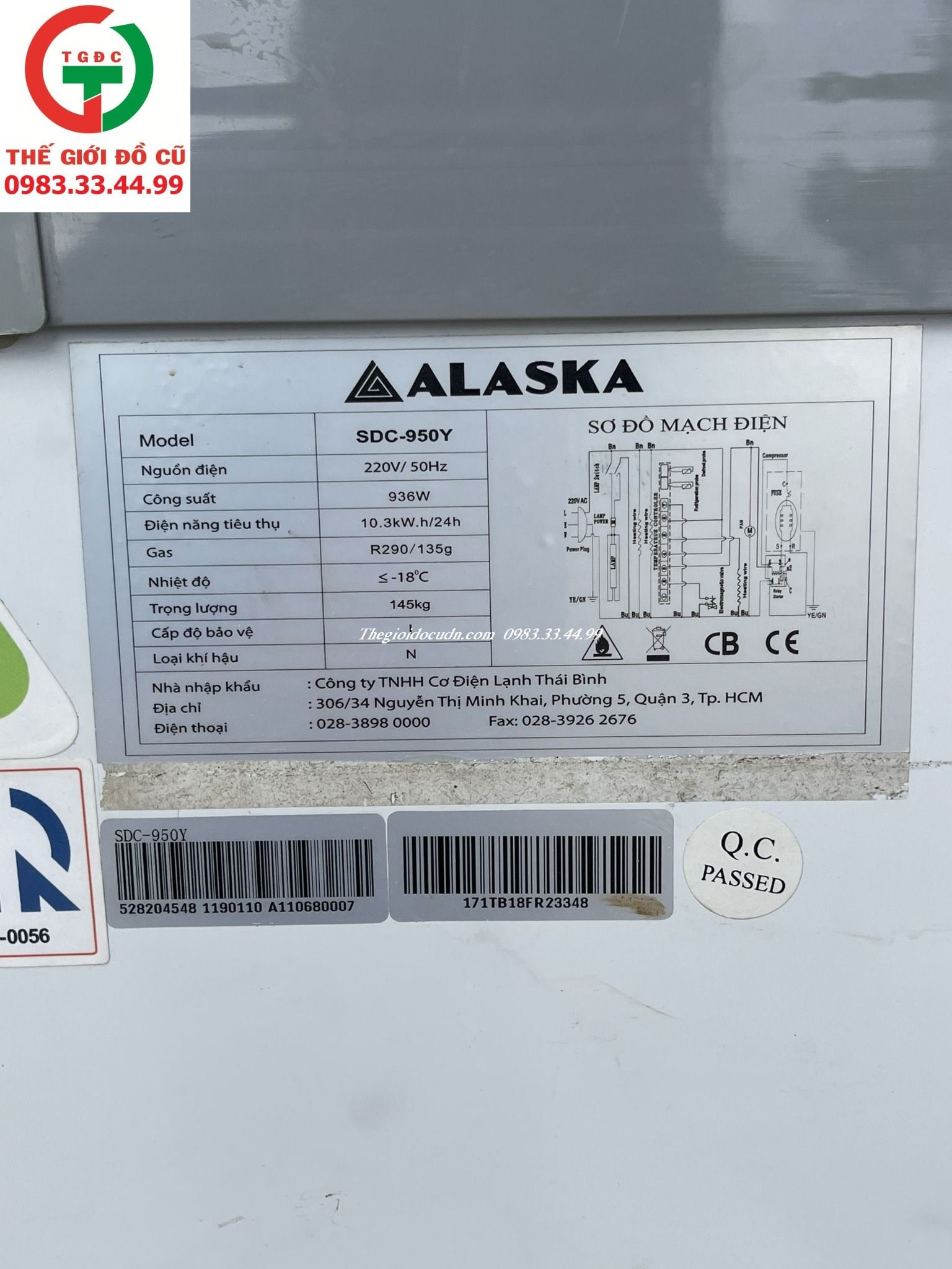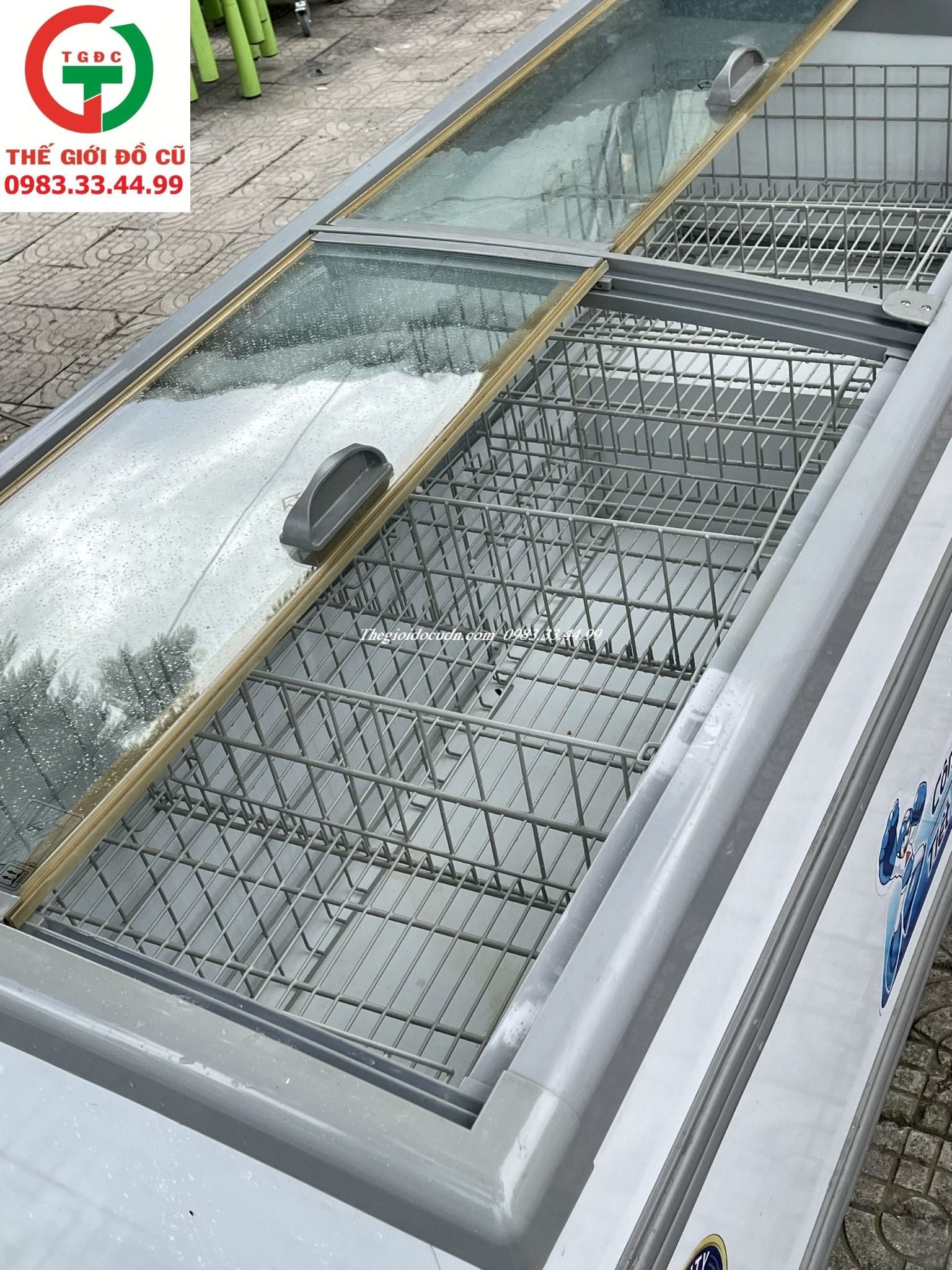 Thanh lý Tủ Đông Alaska kính lùa SDC-950Y còn mới rin, khay rổ đầy đủ.