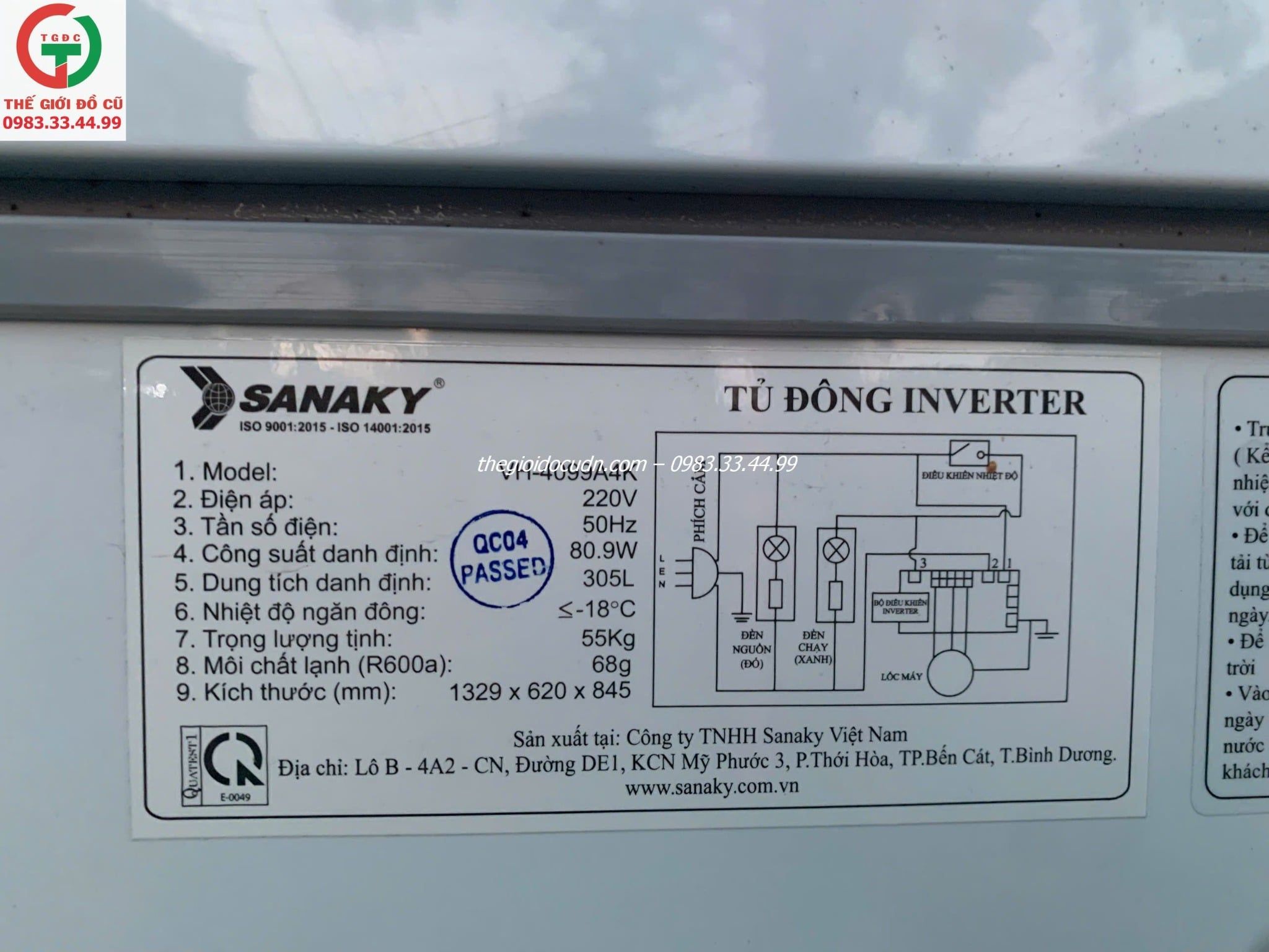 Thanh lí tủ đông SANAKY inverter mới keng còn bảo hành hãng đến 05/2027.