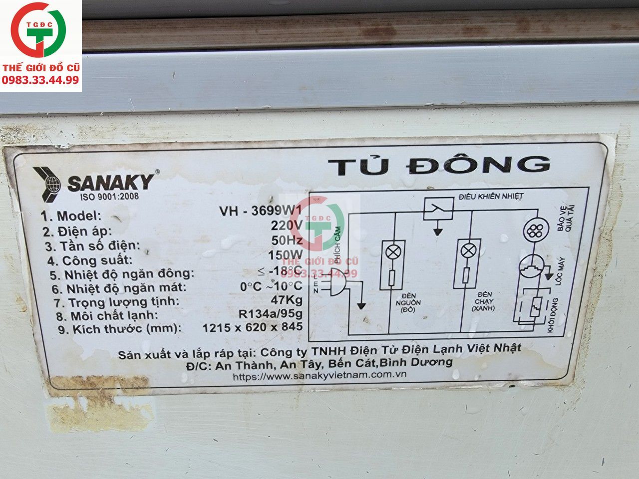 Thanh lí Tủ Đông SANAKY VH-3699W1, tình trạng máy móc vẫn hoạt động êm ổn, ngoại hình còn mới.
