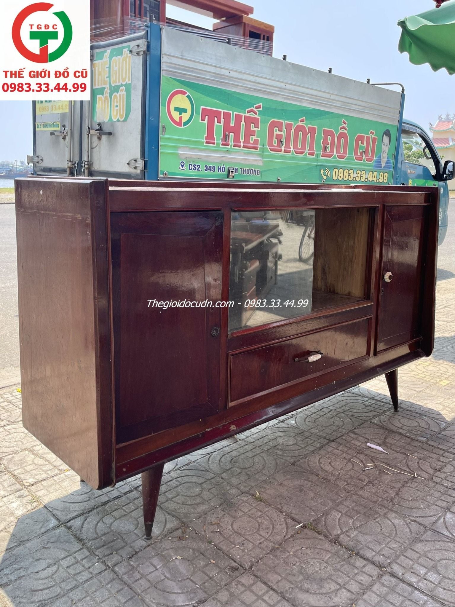 Thanh lý Tủ Gỗ buffet chân đồng xưa còn đẹp màu PU, đúng chất gỗ hương xưa cho AE trang trí phòng khách, đặt để tivi, decor quán xá cafe, khách sạn..