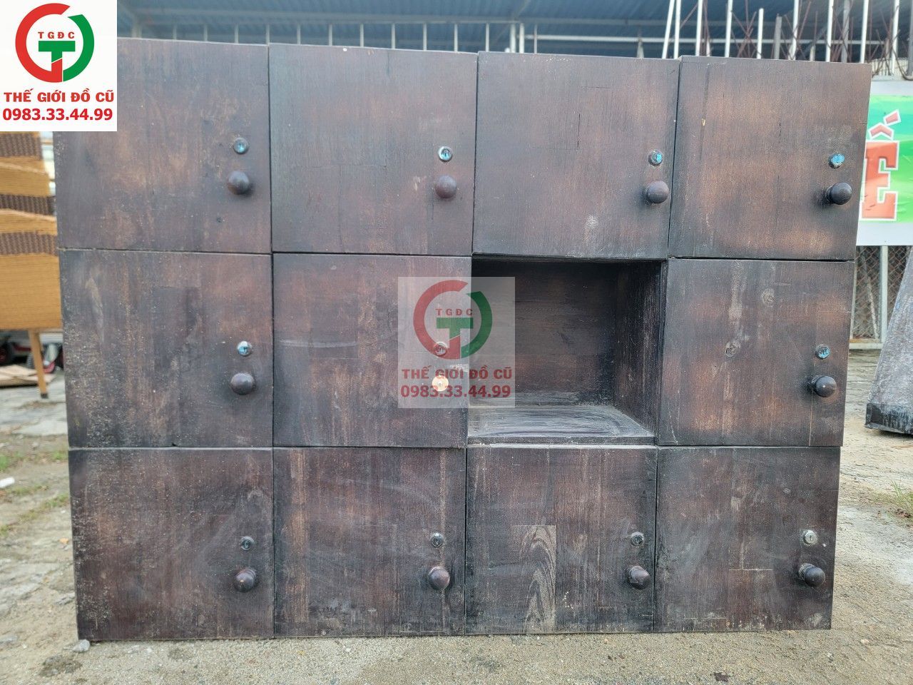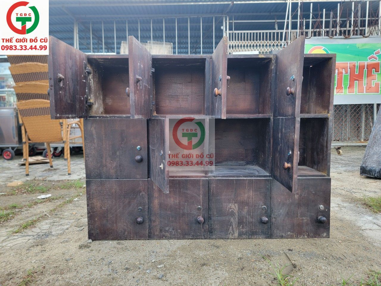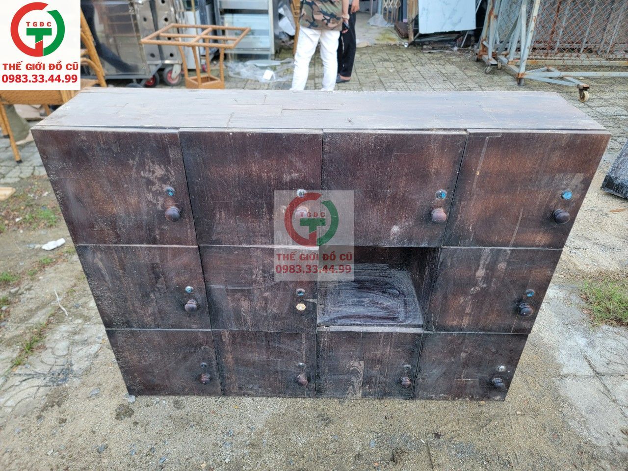 Thanh lý Tủ Locker gỗ 12 ngăn ô màu PU xưa còn tận dụng để đồ dùng cá nhân oke cho quán xá, shop, spa..