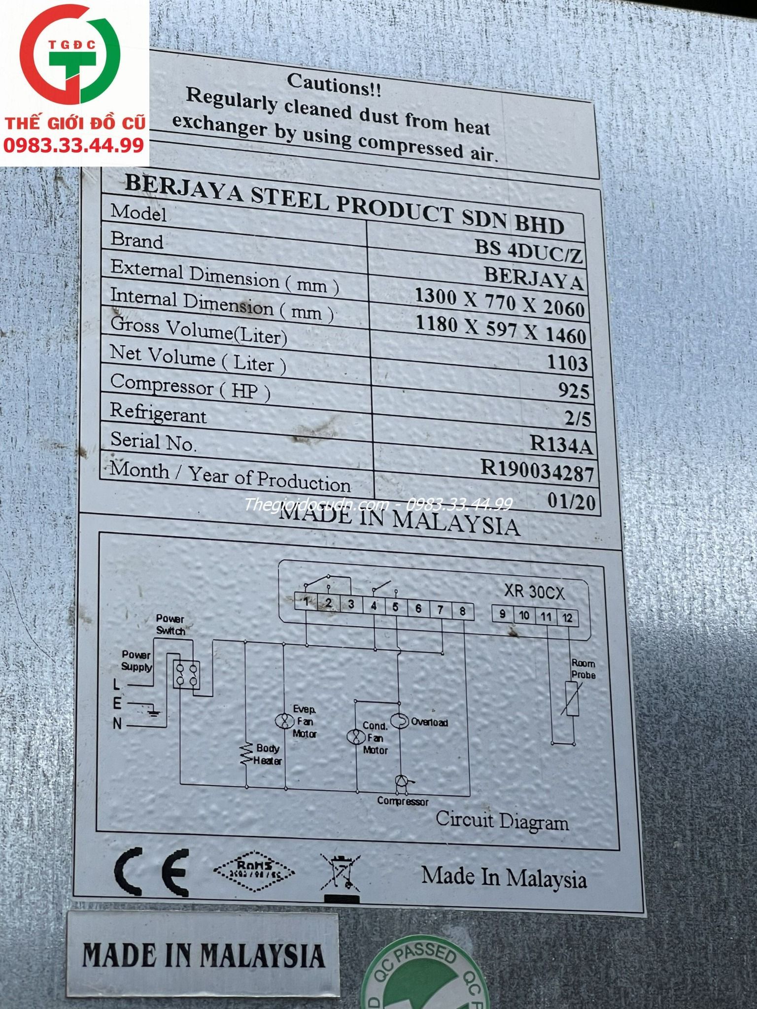 TỦ MÁT INOX BERJAYA 4 CÁNH