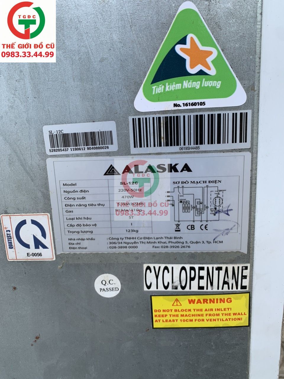 Thanh lý Tủ Mát ALASKA 2 cánh SL-12C rin keng, đã vệ sinh sạch sẽ.