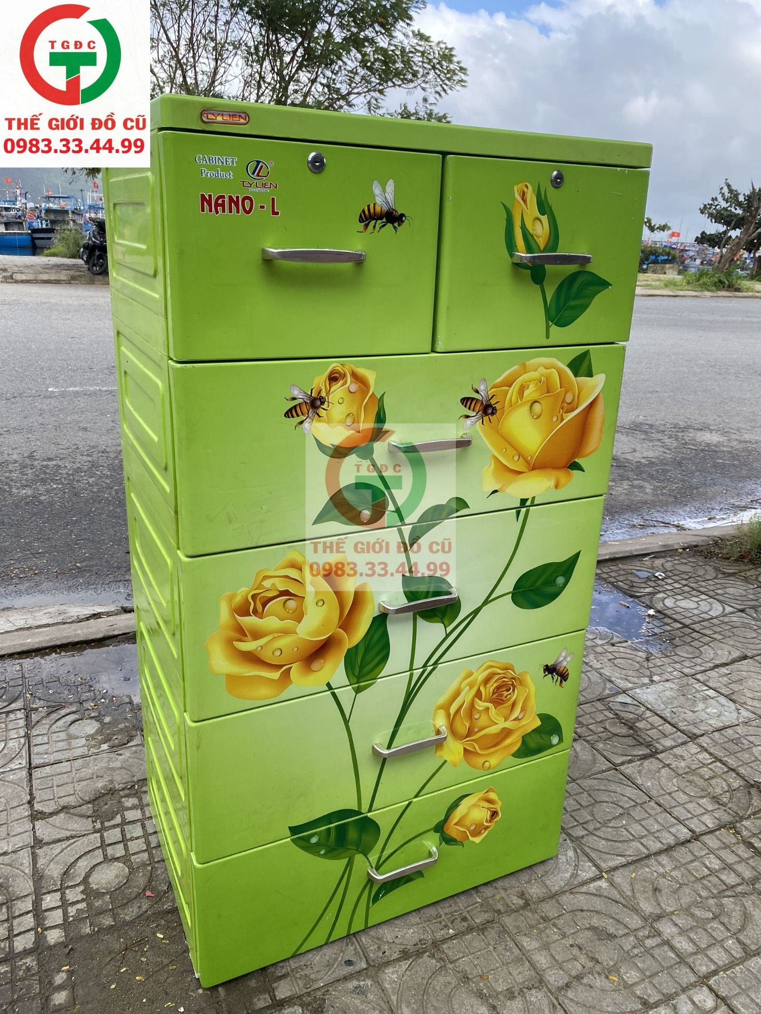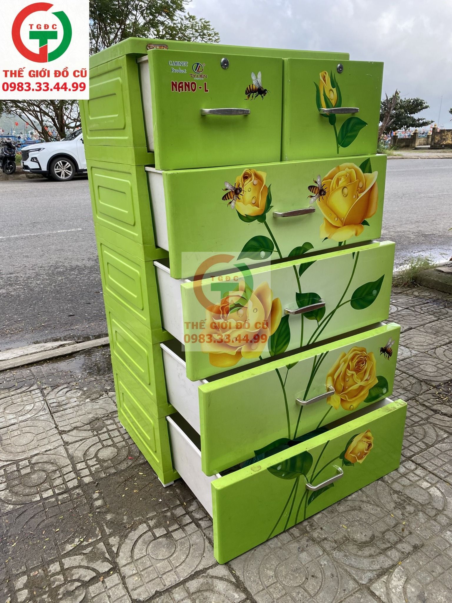 Thanh lý Tủ nhựa 5 tầng 6 ngăn còn mới keng, hoa văn đẹp cho gia đình có con nhỏ, cá nhân, sinh viên đựng áo quần.