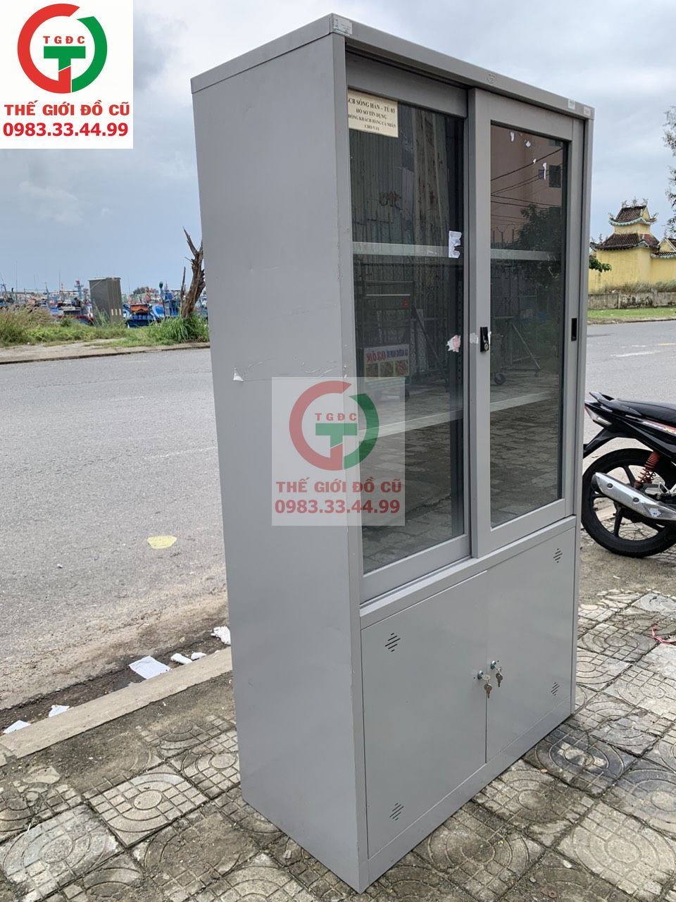 Thanh lý Tủ Hồ Sắt lưu trữ hồ sơ tài liệu cửa lùa tiện gọn còn mới keng, đủ khóa, ngăn hộc sâu rộng..