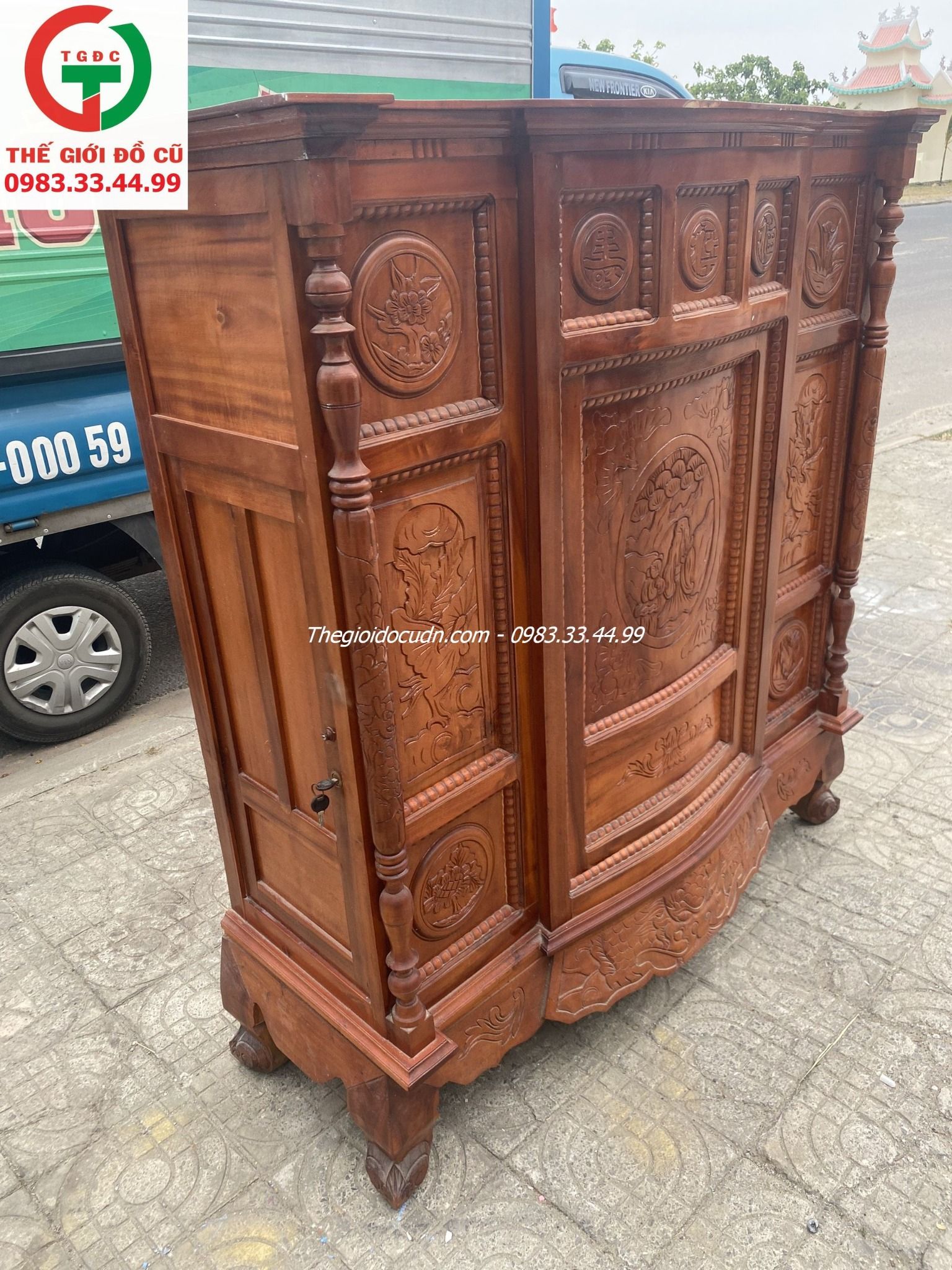Thanh lý Tủ Thờ gia tiên còn mới màu PU, chạm khắc đẹp sắc nét còn cứng cáp, khóa tủ bên đầy đủ.