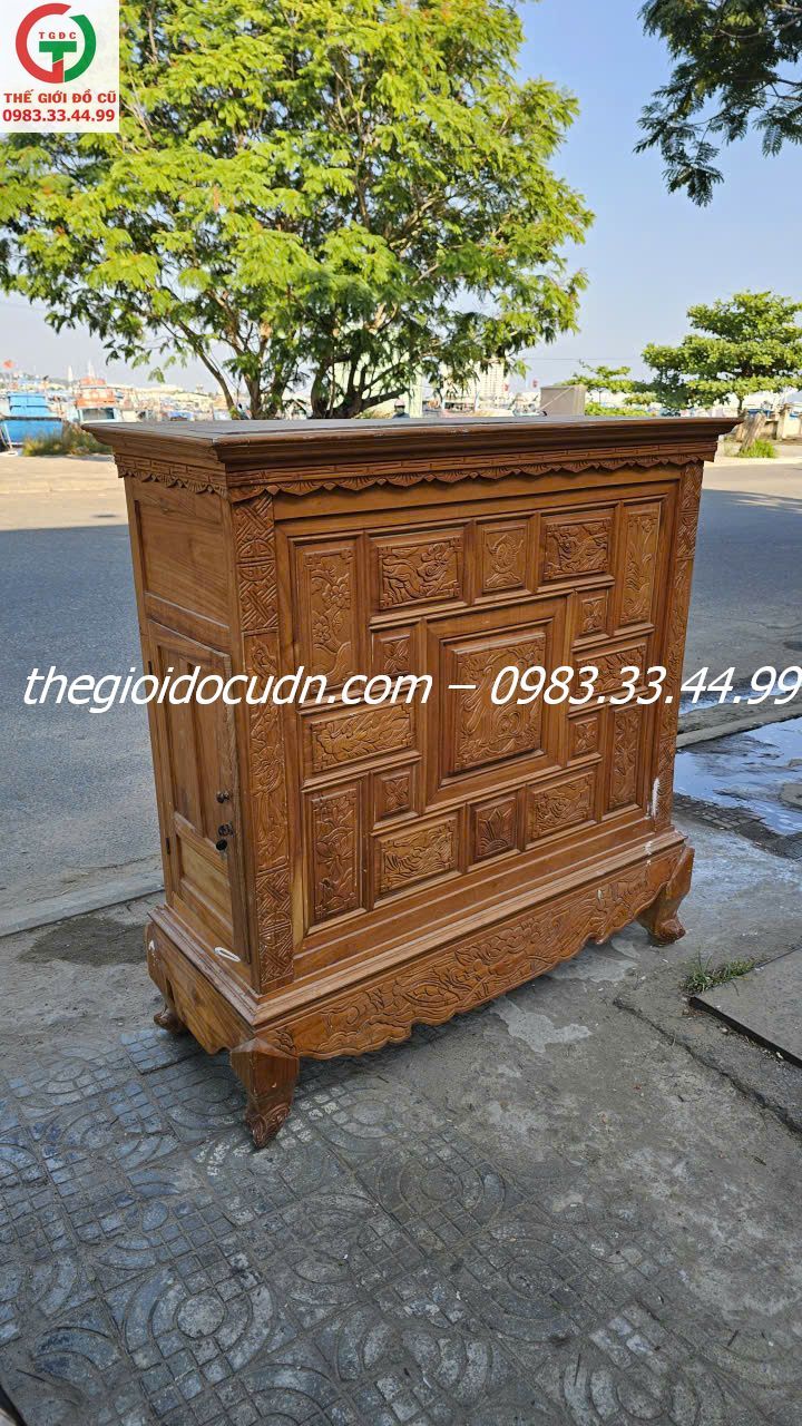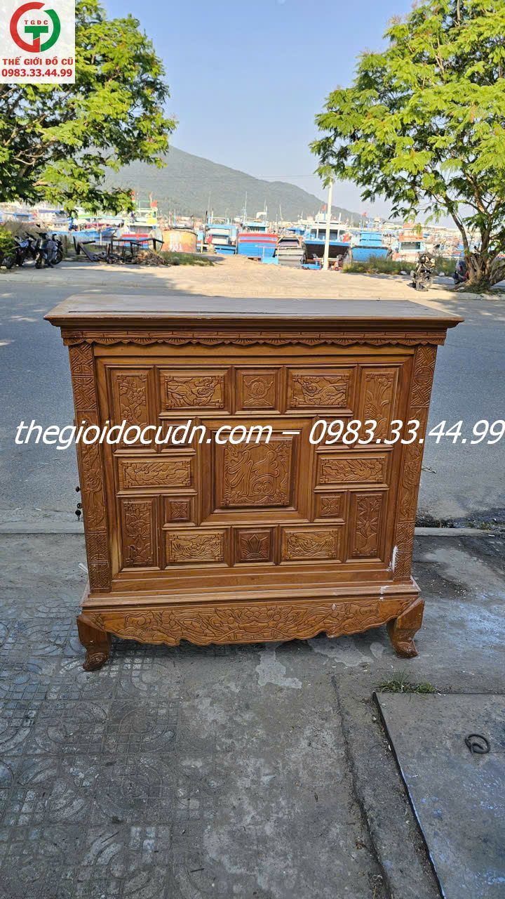 +Tủ được khắc tiện cực nét, có hộc bên để đồ dùng thờ cúng, đầy đủ chìa khóa.