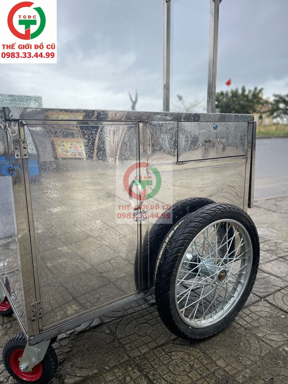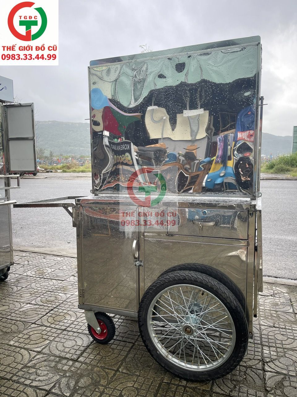 Xe Đẩy Bán Hàng Inox new cứng, có mái che đầy đủ cho anh chị em bán buôn vỉa hè, lề đường ..