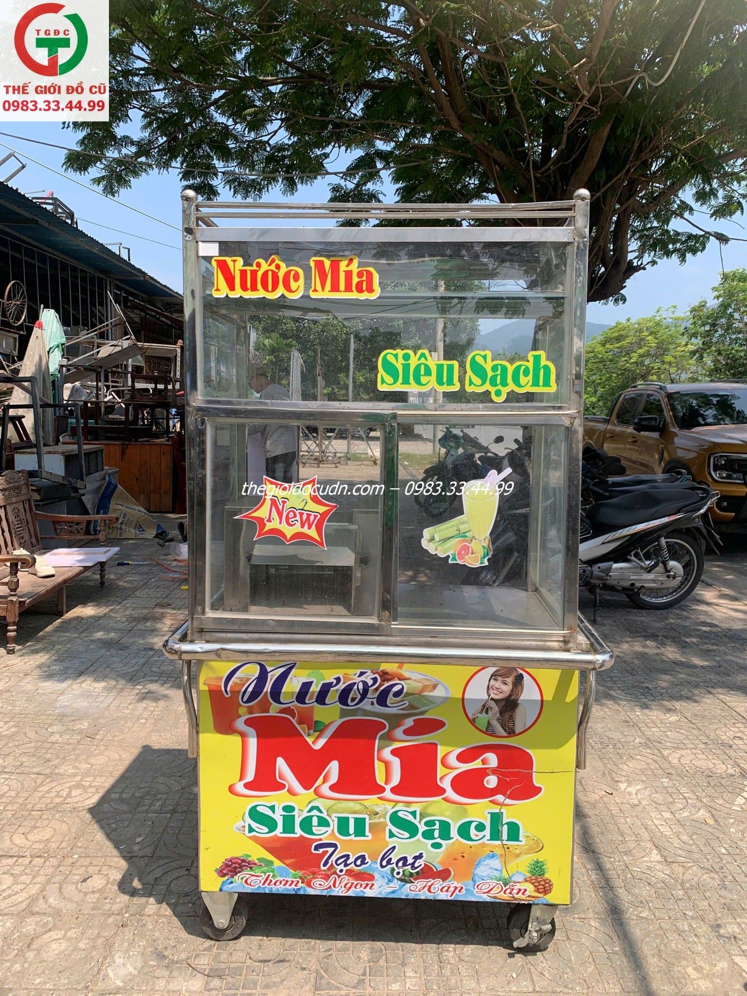 ++Thanh lý Xe nước mía siêu sạch thanh lý, tủ còn mới, máy ép êm nhanh sạch bã. Tủ inox kính sạch sẽ, di chuyển nhẹ nhàng.