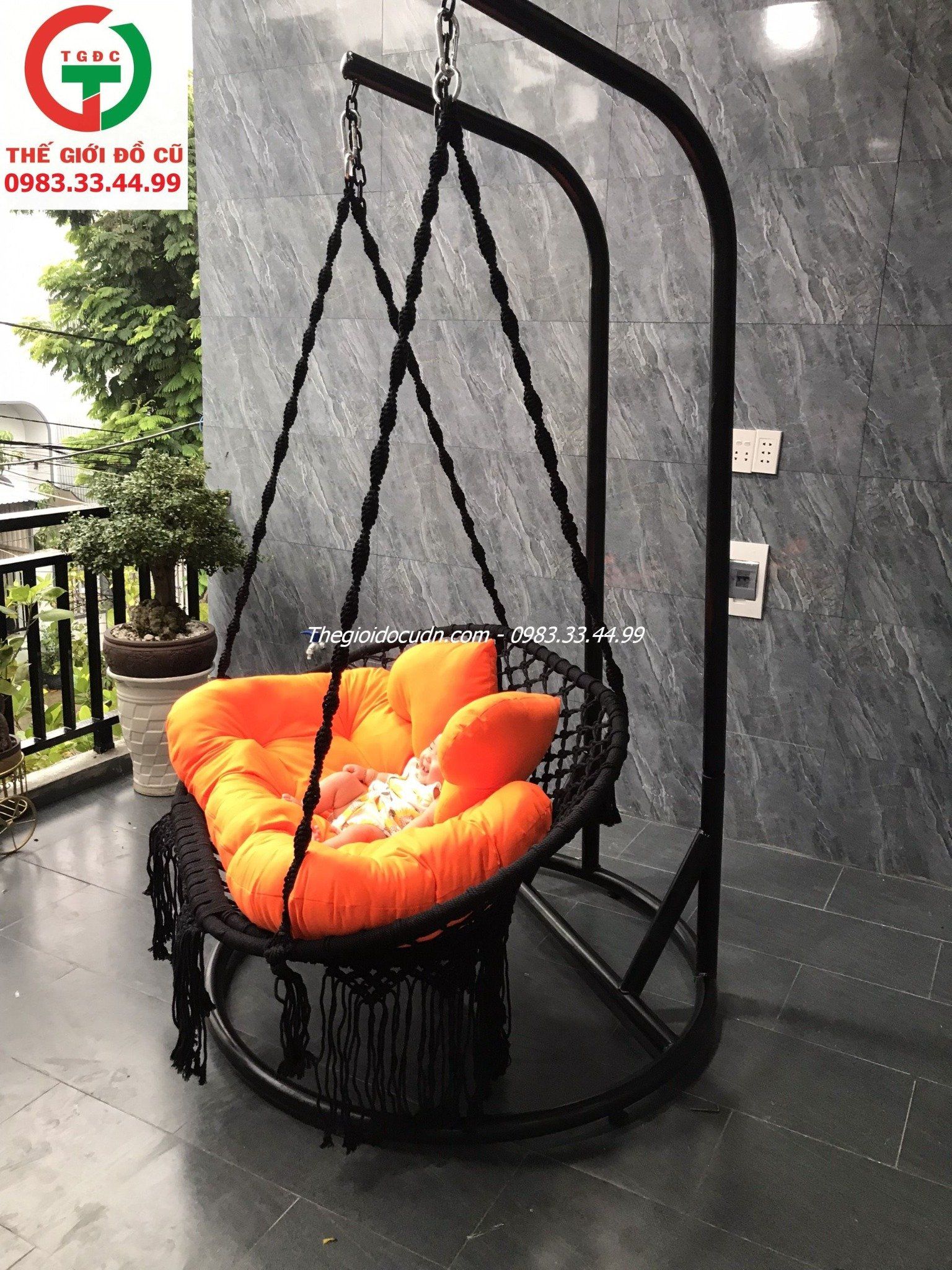 Xích đu rộng, đệm lót đi kèm ngồi êm ái.